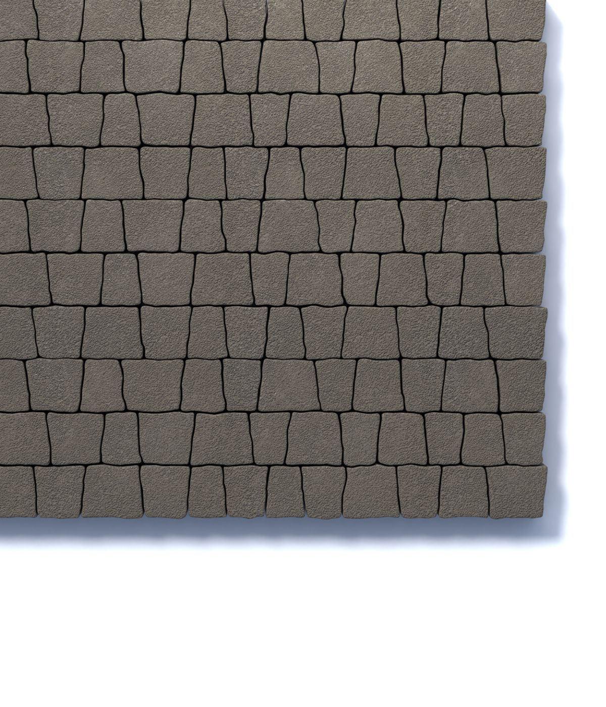 Состоит из 5-и элементов, которые выкладываются в хаотичном порядке рядами. Трапециевидная форма плиты позволяет выполнять как прямую, так и радиусную выкладку. Изготавливается по уникальной технологии методом полусухого вибропрессования из бетона. Поверхность выполнена с оригинальной зернистой фактурой серого цвета. Натуральная Гранитная крошка в лицевом слое изделий наделяет плитку приятной шероховатостью, а также устойчивостью к скольжению. Брусчатка Абрис отличается высокой износостойкостью и практичностью в эксплуатации.