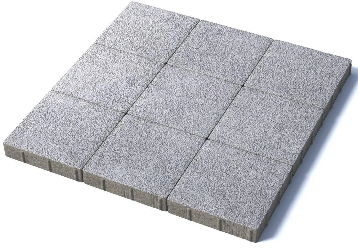 Изготавливается по уникальной технологии методом полусухого вибропрессования из бетона. Поверхность выполнена с оригинальной зернистой фактурой белого цвета. Натуральная Гранитная крошка в лицевом слое изделий наделяет плитку приятной шероховатостью, а также устойчивостью к скольжению. Брусчатка Квадрат 300х300 отличается высокой износостойкостью и практичностью в эксплуатации.