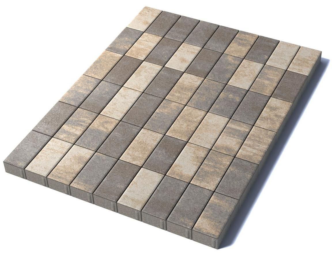 Изготавливается по уникальной технологии методом полусухого вибропрессования из бетона. Поверхность бело-бежево-темно-коричневого цвета. Брусчатка Прямоугольник 100х200 отличается высокой износостойкостью и практичностью в эксплуатации.