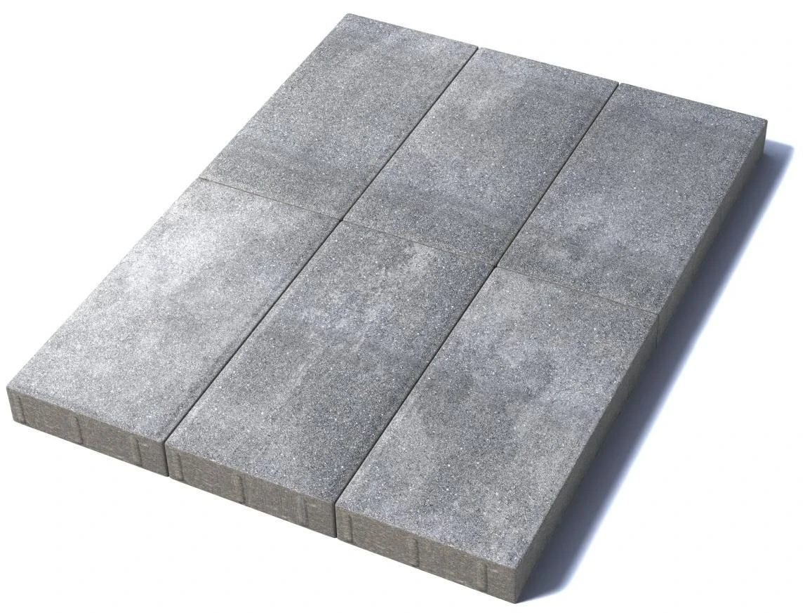 Изготавливается по уникальной технологии методом полусухого вибропрессования из бетона. Поверхность бело-серо-черного цвета. Брусчатка Прямоугольник 600х300 отличается высокой износостойкостью и практичностью в эксплуатации.