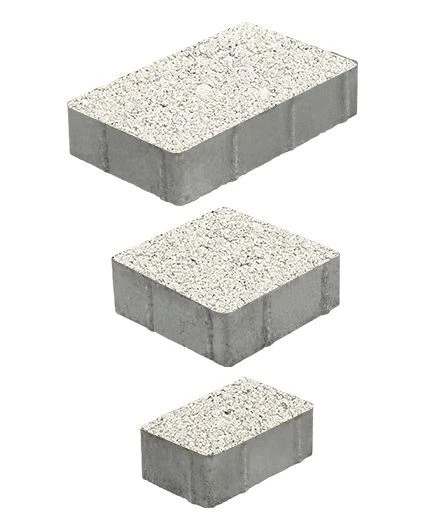 Состоит из 3-х элементов, которые выкладываются в хаотичном порядке рядами. Изготавливается по уникальной технологии методом полусухого вибропрессования из бетона. Поверхность выполнена с оригинальной зернистой фактурой белого цвета. Натуральная гранитная крошка в лицевом слое изделий наделяет плитку приятной шероховатостью, а также устойчивостью к скольжению.