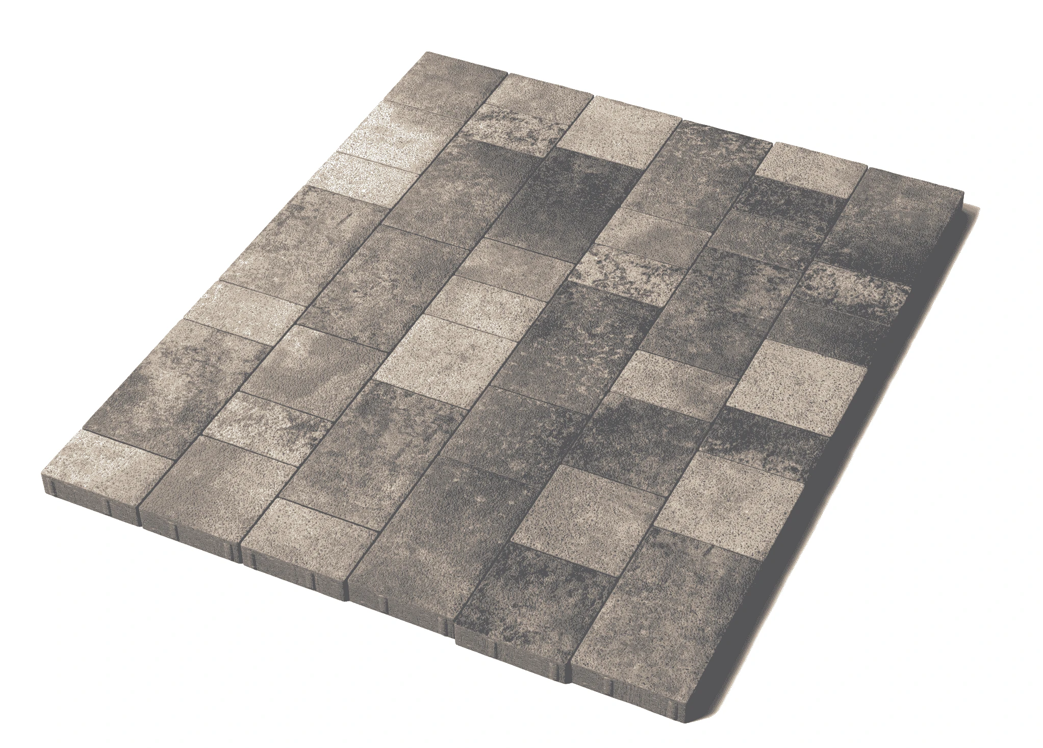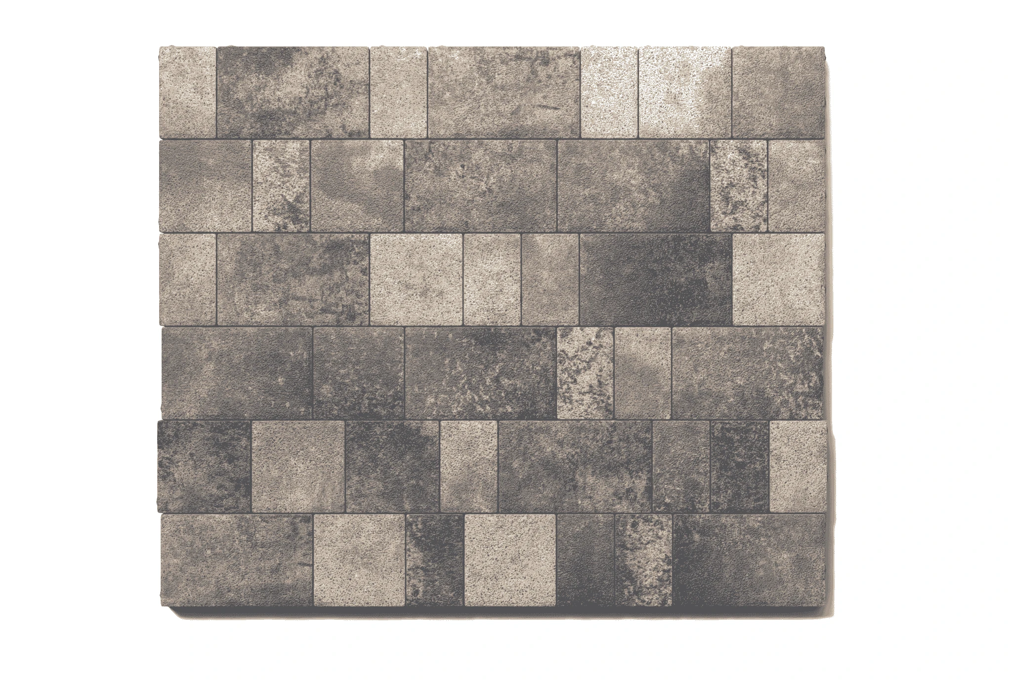 Состоит из 3-х элементов, которые выкладываются в хаотичном порядке рядами. Изготавливается по уникальной технологии методом полусухого вибропрессования из бетона. Поверхность выполнена с оригинальной зернистой фактурой бело-черно-коричневого цвета. Натуральная гранитная крошка в лицевом слое изделий наделяет плитку приятной шероховатостью, а также устойчивостью к скольжению.