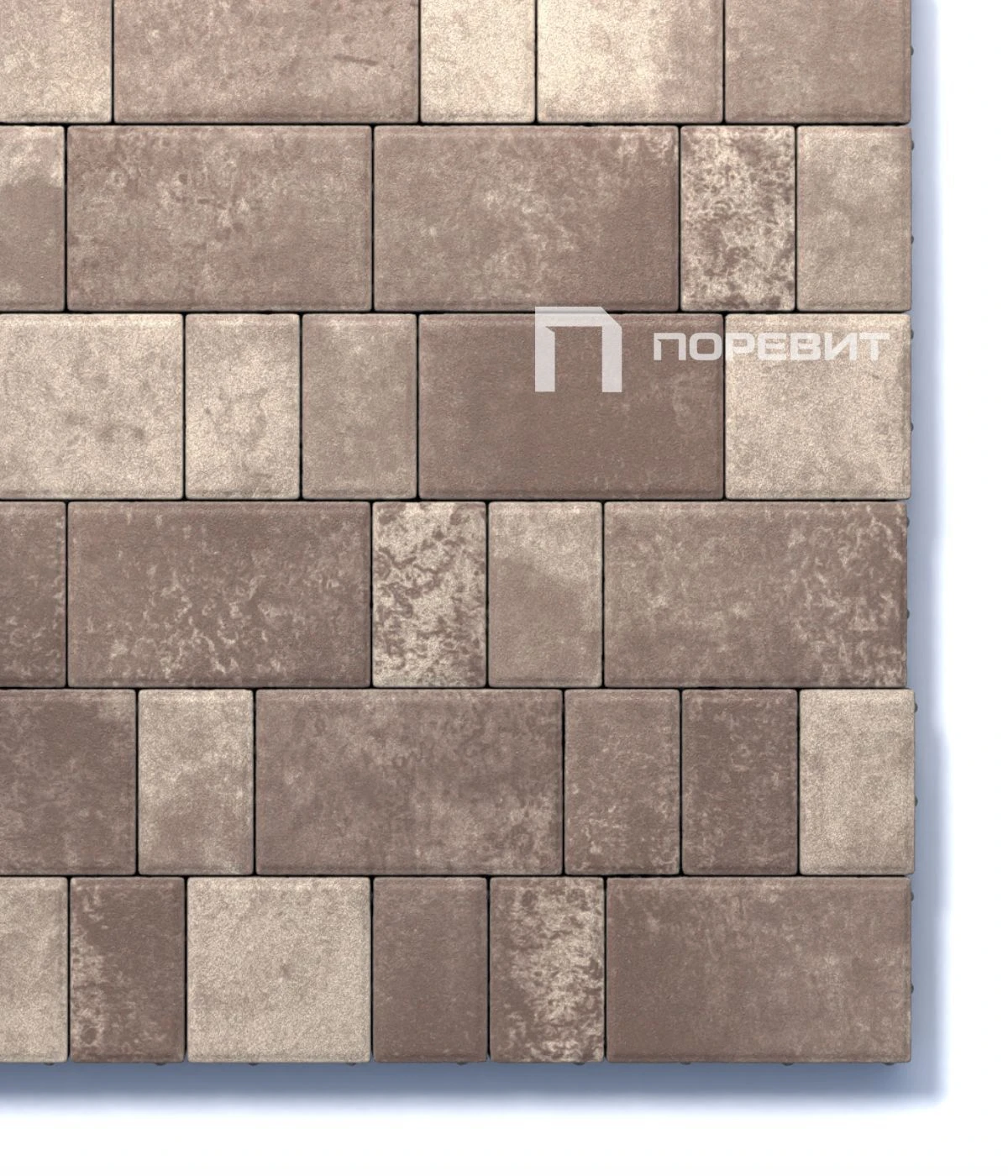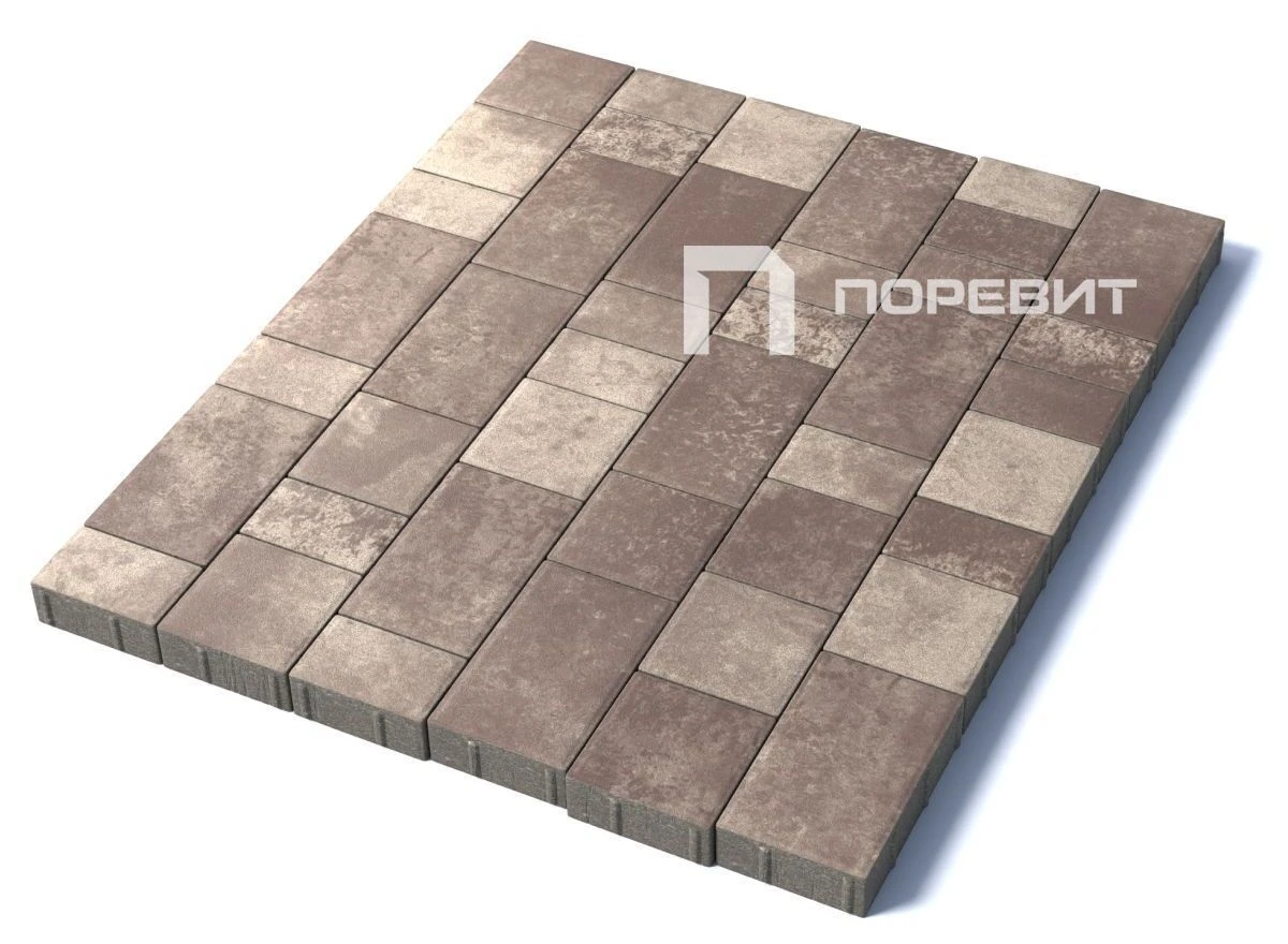 Состоит из 3-х элементов, которые выкладываются в хаотичном порядке рядами. Изготавливается по уникальной технологии методом полусухого вибропрессования из бетона. Брусчатка Старый город отличается высокой износостойкостью и практичностью в эксплуатации. Поверхность бело-бежево-коричневого цвета. Для прокраса плиты в нескольких цветах применяется технология введения пигмента в бетон Colormix. Два или три пигмента, нанесённые хаотично, образуют неповторимый рисунок на поверхности изделия. Чтобы избежать цветовых пятен или разрывов рекомендуется выполнять укладку плиты с соблюдением правила пяти или трех поддонов.