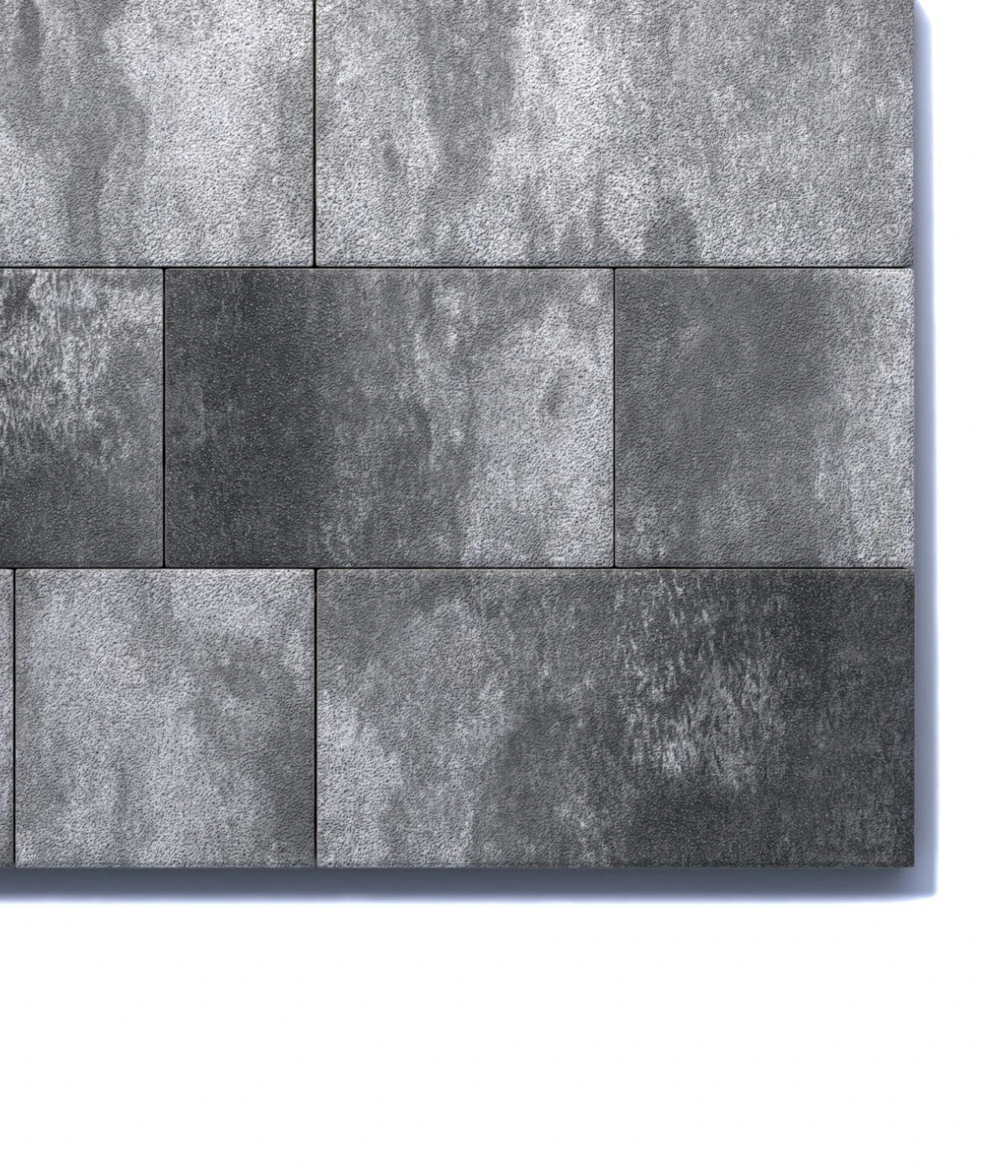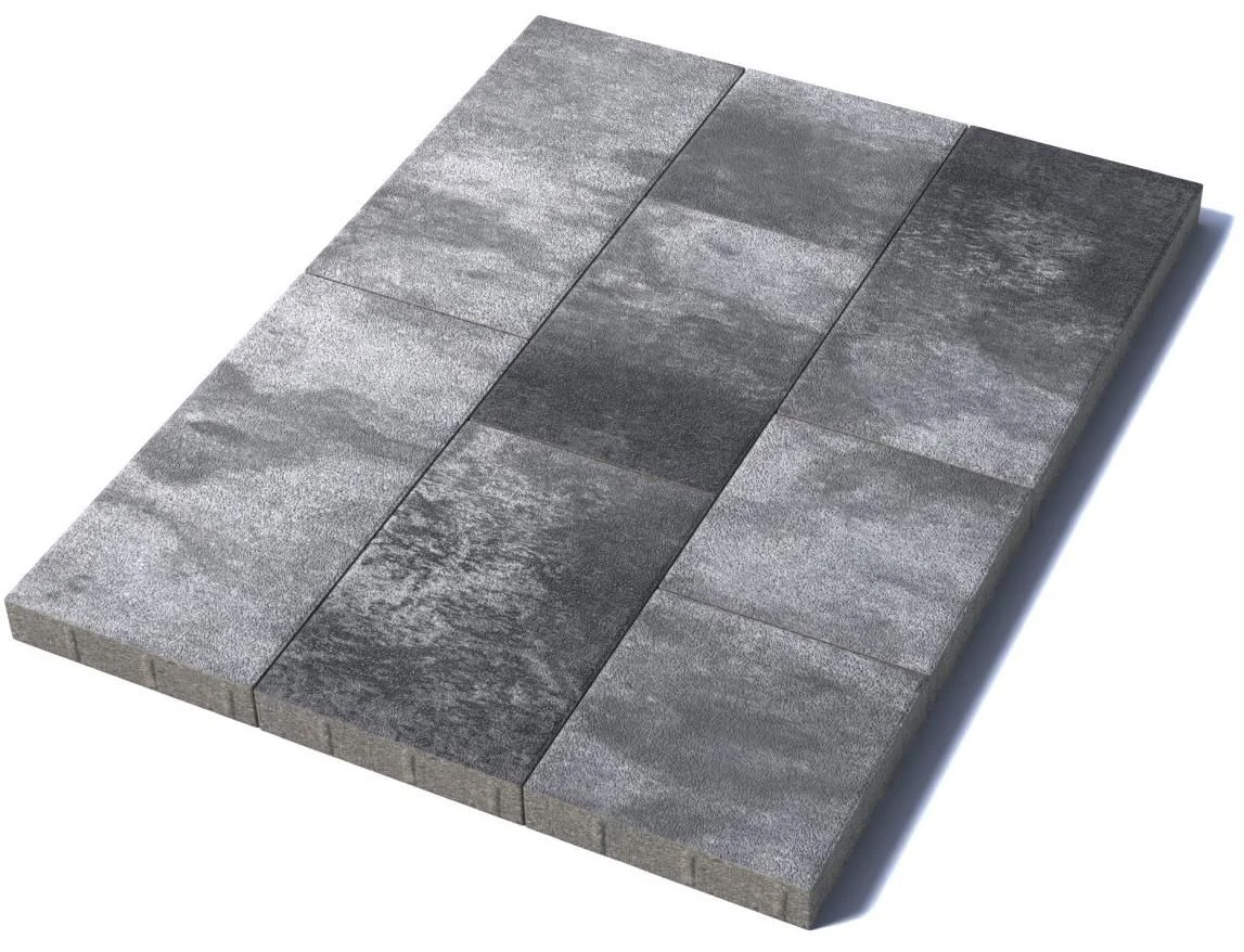 Состоит из 3-х элементов, которые выкладываются в хаотичном порядке рядами. Изготавливается по уникальной технологии методом полусухого вибропрессования из бетона. Поверхность выполнена с оригинальной зернистой фактурой черно-белого цвета. Натуральная гранитная крошка в лицевом слое изделий наделяет плитку приятной шероховатостью, а также устойчивостью к скольжению.