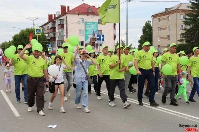 Традиционно состоялись праздничные шествия коллективов предприятий города.