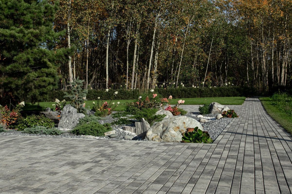 • Ландшафтный дизайн участка с укладкой плитки Старый город и Паркет 180х60 в Тюмени