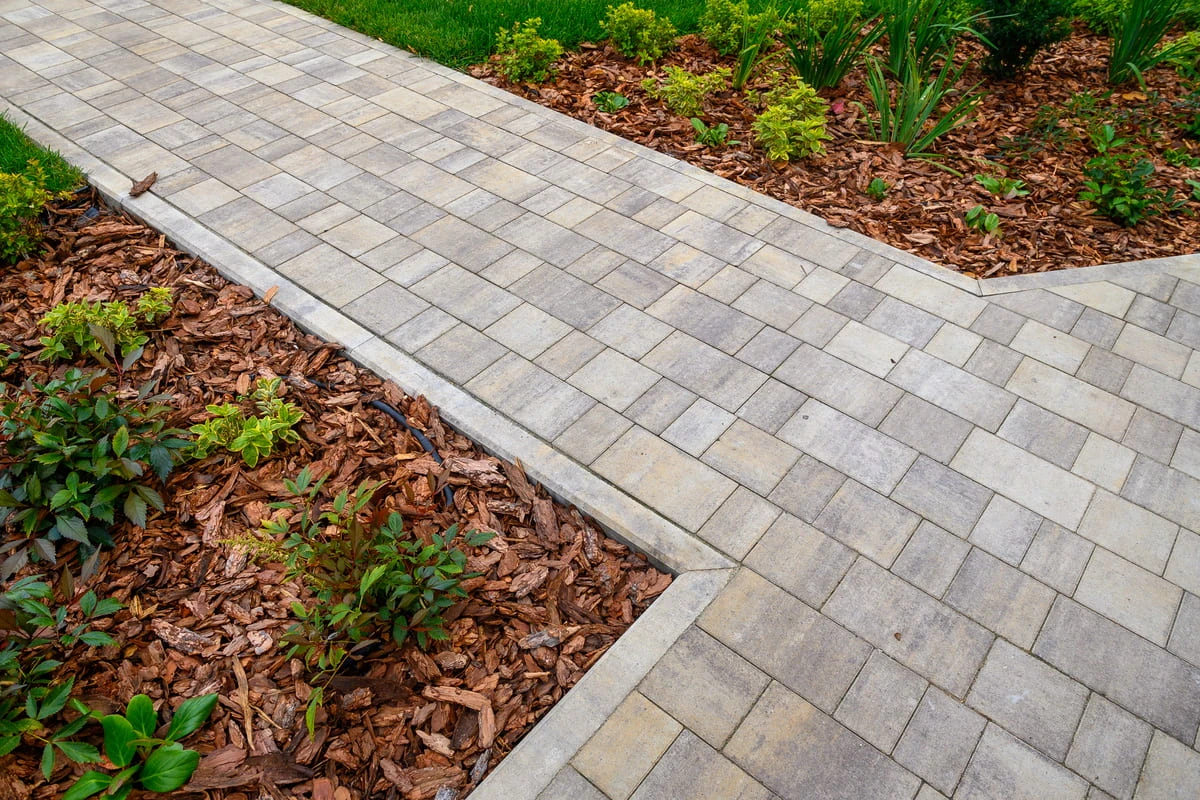 Для благоустройства территории частного дома была выбрана тротуарная плитка 40 мм толщиной. Это позволило сократить бюджет.