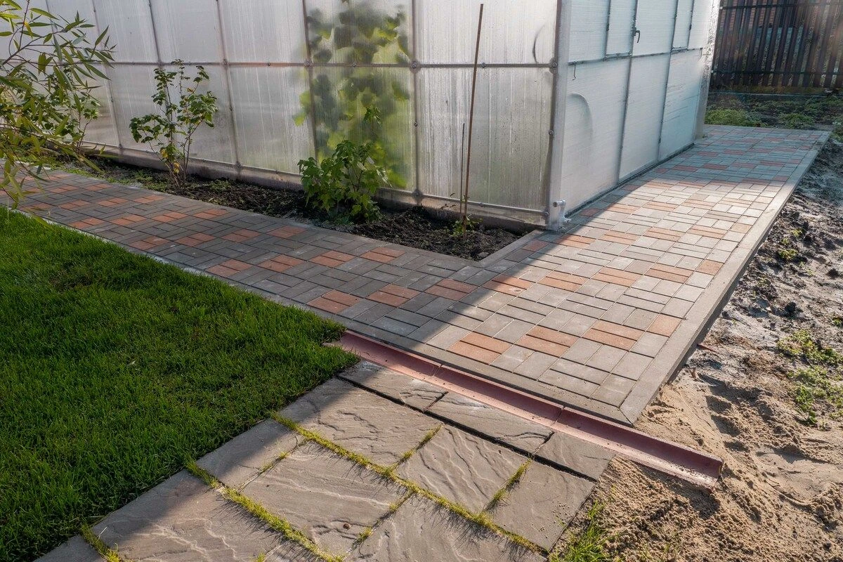Дополнением мощения стали бордюр дорожный и бордюр поребрик серого цвета.