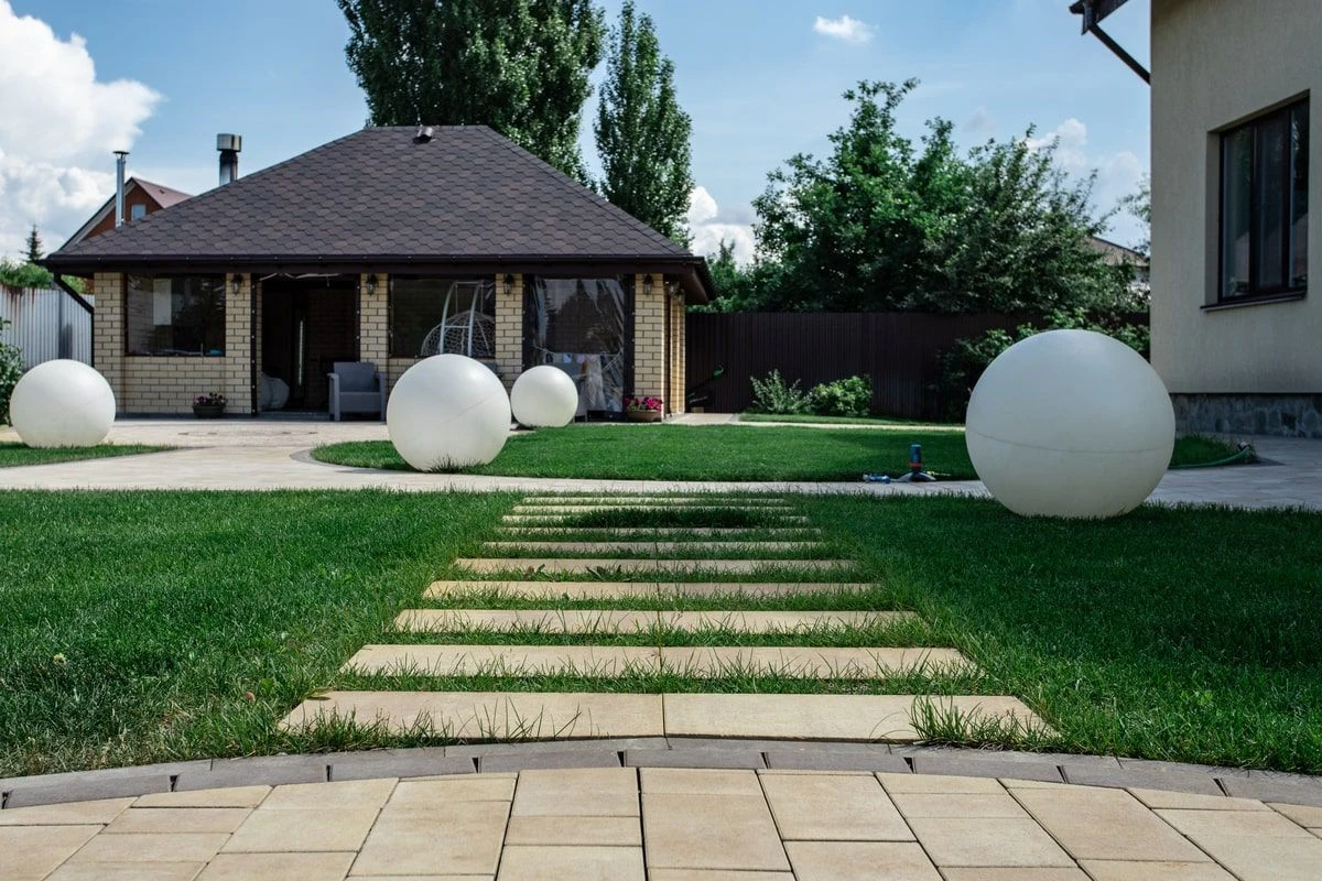 • Благоустройство дома: плитка в цвете Антрацит и шаговые дорожки