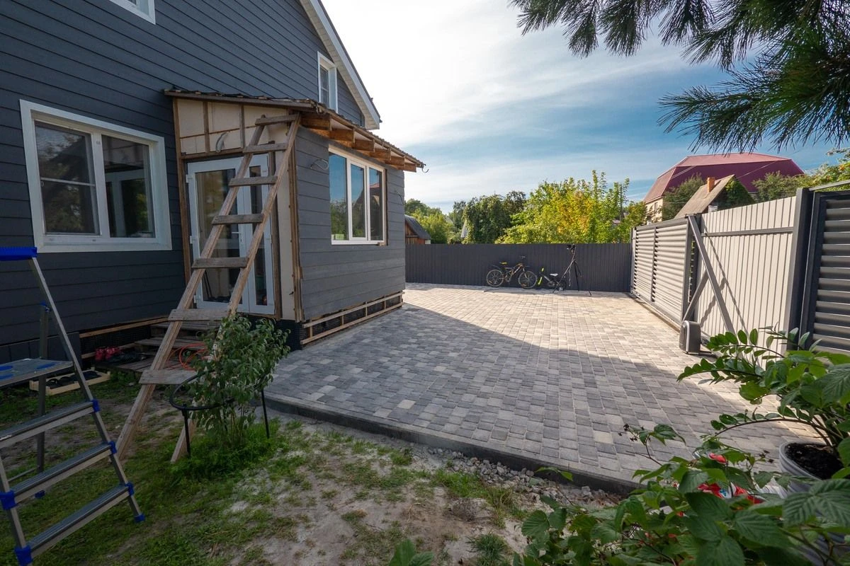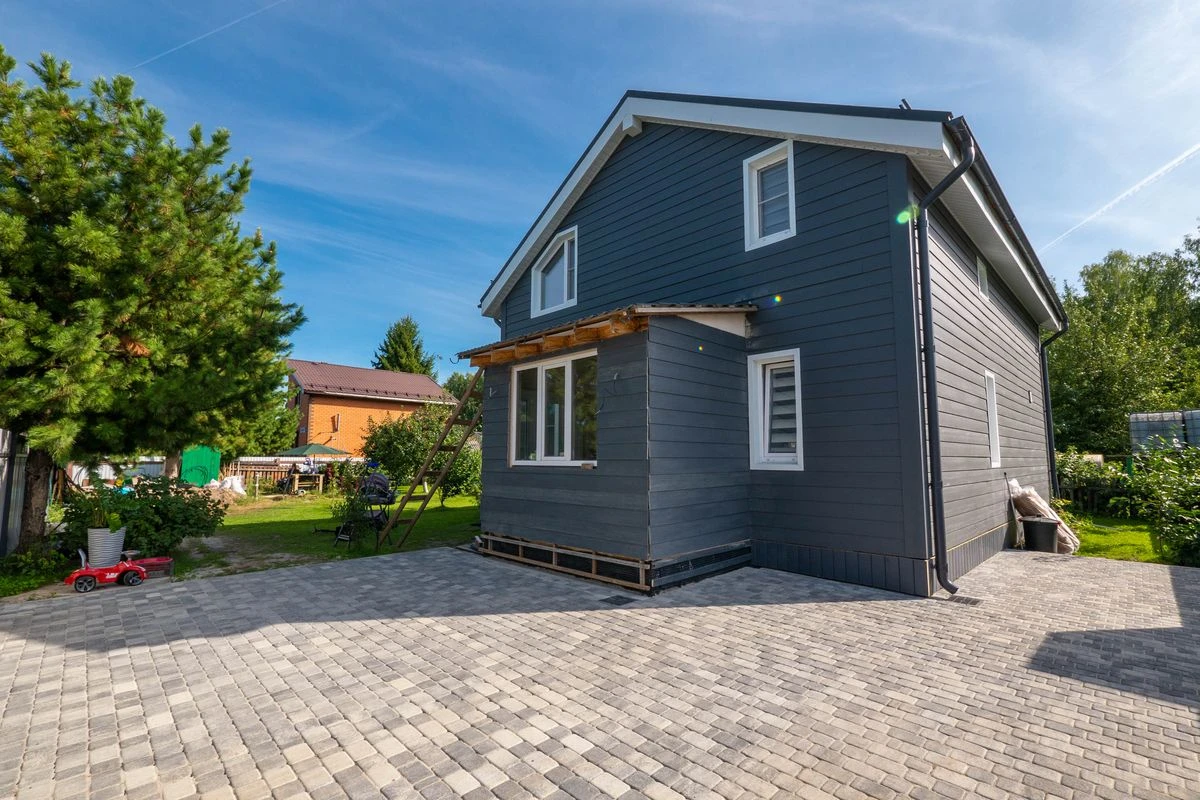 Изюминкой объекта стала тротуарная плитка формы Классико из трех камней, в цвете Листопад Гладкий (колормикс), Антрацит. Закругленные края формы (завальцованные) придают ей классический вид. Идеально сочетается с фасадом дома.