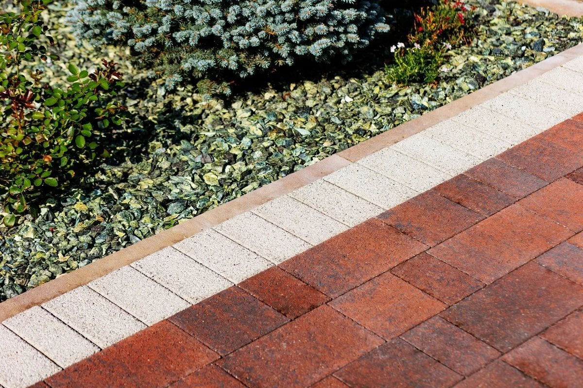 Необычная раскладка тротуарной плиты: комбинация узоров, фактур и цветов.