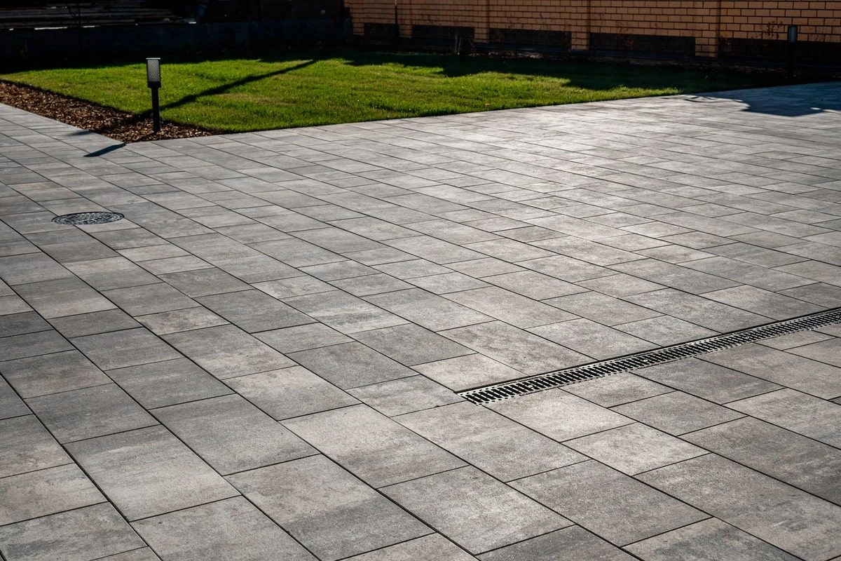 С помощью плитки была выполнена отмостка возле дома, въезд в гараж и парковочное место, входная группа у крыльца. Материалы подобраны таким образом, чтобы создать нестандартную текстуру без необходимости микса разных коллекций плитки.