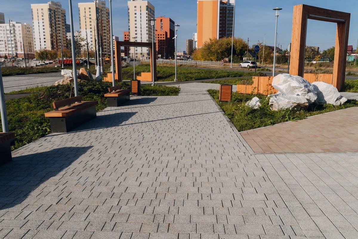 • Ландшафтный дизайн в Тюмени с плиткой Ригель, Трио, 300х900 мм