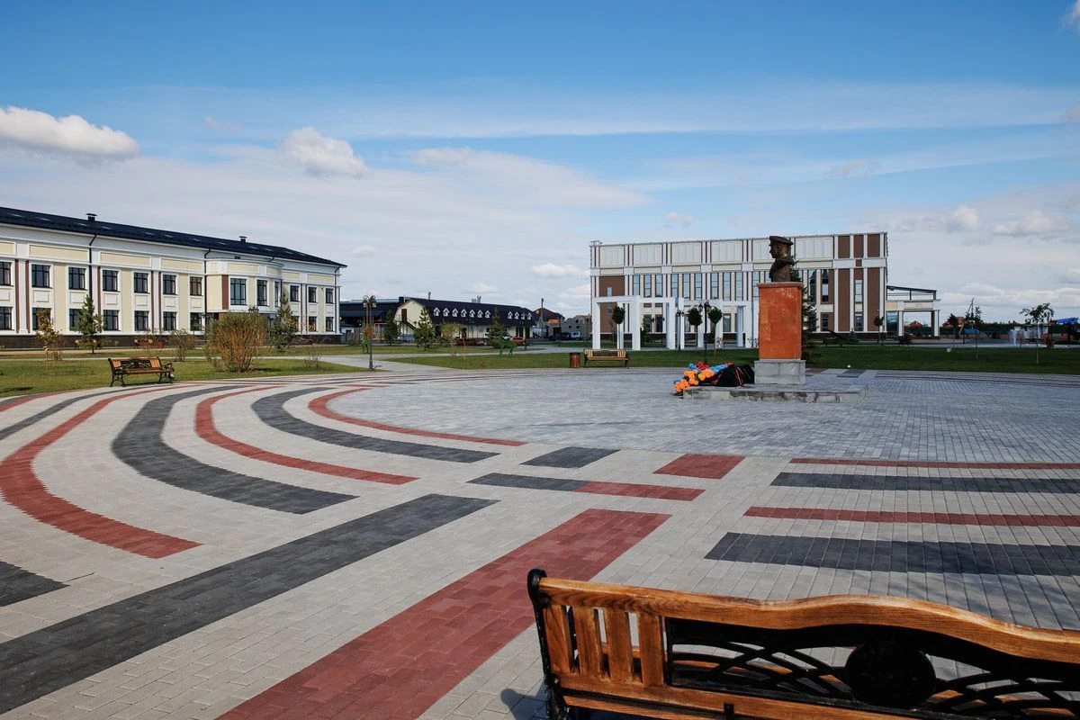 Зона фонтана и территория, где расположен памятник Маршалу И.Х. Баграмяну оформлены плиткой Старый город и прямоугольник 100 на 200 в цвете Антрацит.