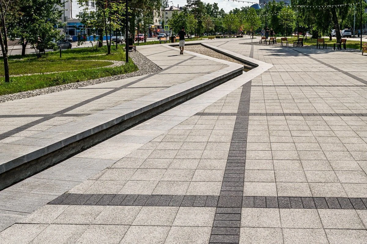 • Ландшафтный дизайн в Тюмени с плиткой Ригель, Трио, 300х900 мм