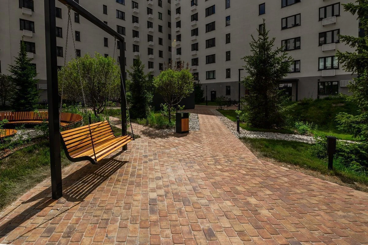 • Благоустройство территории дома в Луговом: плитка Старый город, Доломит